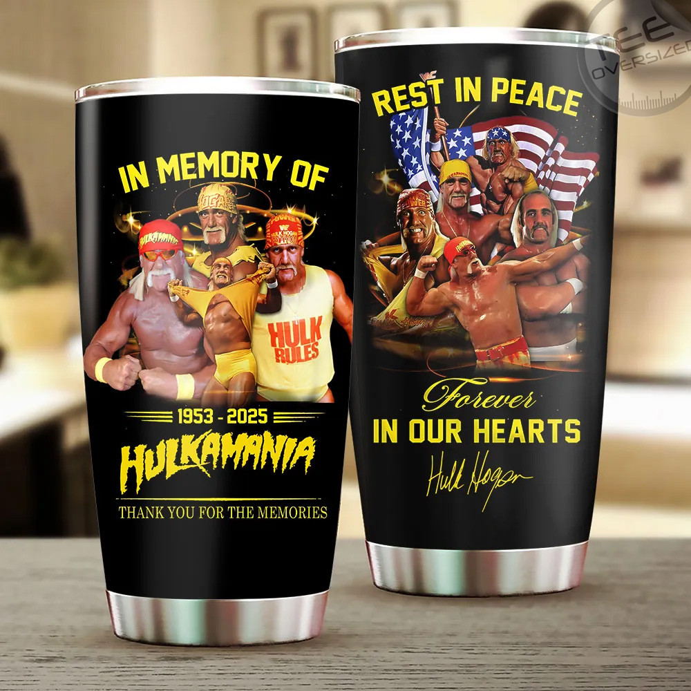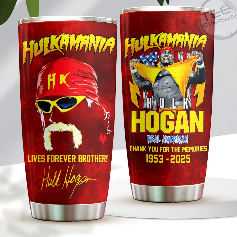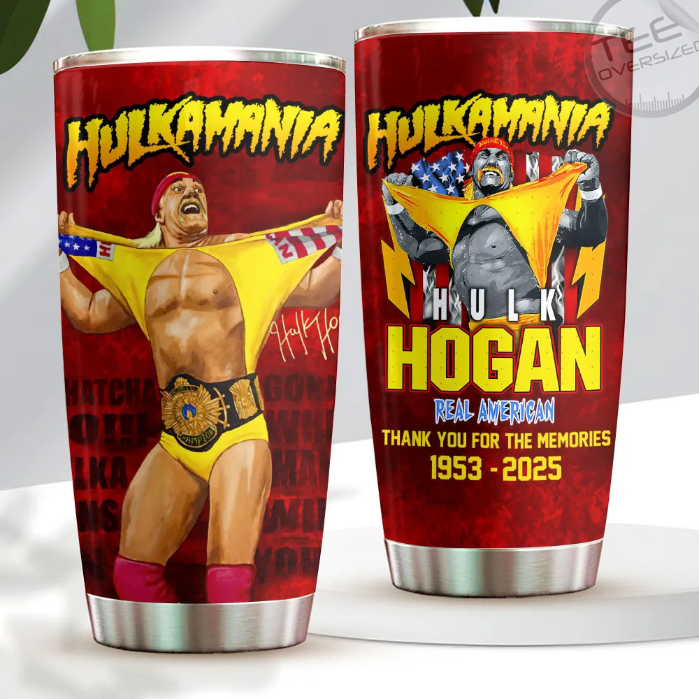 Hulk Hogan tumbler: double-wall stainless steel, splash lid, BPA-free, 20 or 30-oz size — power up your sip with legend status.