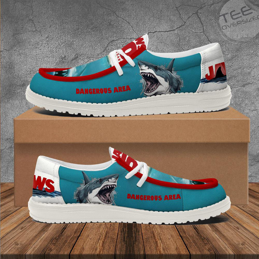 Step into style with JAWS Dudes Loafer Shoes — striking slip-ons featuring the iconic shark design inspired by Jaws. Made with breathable canvas, cushioned insoles, and stretch side panels for easy wear. Perfect for everyday wear or making a statement, these sneakers combine bold graphics with comfort. Eye-catching, lightweight, and ready to thrill.
