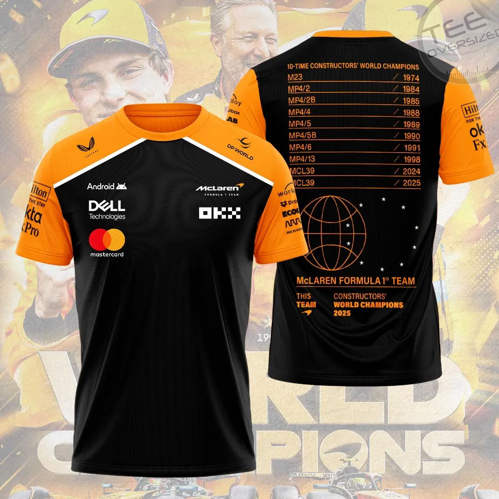 Celebrate McLaren’s triumph with the McLaren 2025 Constructors’ Championship T-Shirt. This bold, commemorative tee features dramatic graphics and a modern fit that stands out. Crafted for fans, it’s an essential piece to mark their 2025 F1 victory. Wear your pride on your sleeve.